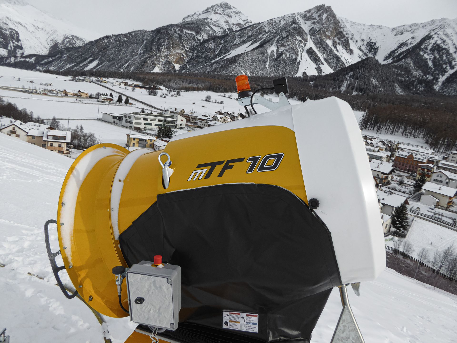 TF10 Manual впечатляет революционным принципом ручного управления форсунками. Управление осуществляется не с помощью кольца форсунок или блока клапанов: отдельные форсунки легко и удобно переключаются на дисплее. Это обеспечивает не только мобильное использование вентиляторного снегогенератора, но и установку на подъемник, консоль и опору без серьезных расходов на техническое обслуживание. При наличии дополнительного электромотора TF10 Manual автоматически отключается в случае неисправности.