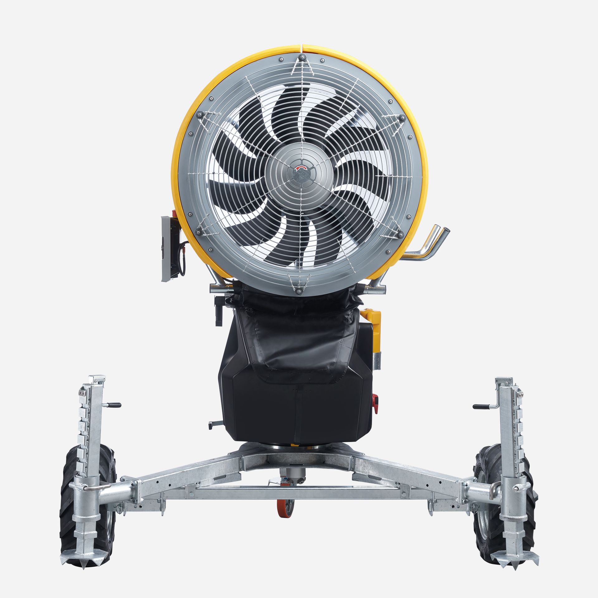 Perfect snow quality starts with the smallest parts of a snow gun. All the nucleators on the TR10 have two ruby inserts that ensure the constant production of high-quality snow. This is coupled with innovative and highly efficient nozzle valve technology. Excess water is directly incorporated into the air jet to prevent water loss on valve actuation. Every drop of water is turned into snow. The new mechanical concept of automatic positioning also ensures even greater efficiency in snowmaking.