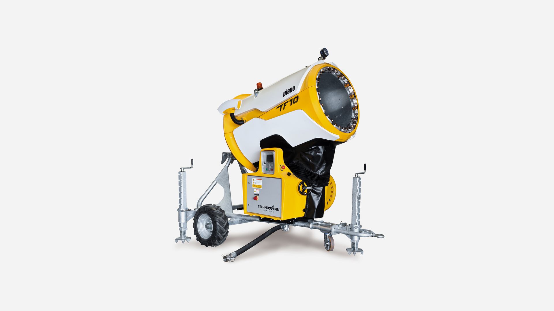 TF10 Piano 不但继承了 TF10 超高的造雪量和惊人的喷射范围,还进一步降低了噪音。这归功于涡轮机上的隔音罩以及压缩机上的隔音盖和特殊空气过滤器。电气控制柜内的变频器使 TF10 Piano 可以在部分负荷的情况下运行。同时,电机转速降低,从而造雪时的噪音更小。